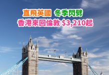 【英國】冬季閃劈!香港直航來回倫敦$3,210起!用優惠代碼再減!2019年6月中前出發 – 維珍航空 (優惠至12月11日)