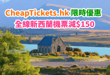 CheapTickets.hk推出新一期嘅聖誕優惠,預訂全線香港來回新西蘭機票:使用優惠代碼「ZEALAND150」後即減$150!