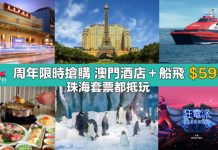 中旅社推出「90週年限時搶購」!多個澳門套票都有優惠價,例如「澳門百老匯酒店」1晚住宿+來回船飛+餐券:每位$599起!勁抵玩!