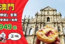 好掛住葡撻、豬扒包,一於過大海飲飲食食啦!中旅社推出「饗樂遊」澳門套票,每位$949起 (連稅$960起)!