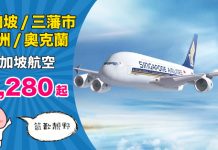 【筍歎靚嘢】新航劈價!香港來回新加坡$1,280、三藩市$3,480、澳洲各地$2,195、奧克蘭$2,810 – 新加坡航空 (優惠至11月12日)