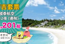 【布吉套票】泰筍價!國泰「機票+酒店」連稅:3日2夜$2,201起、5日4夜$2,250起!2019年3月前出發 – 國泰航空 (優惠至11月30日)