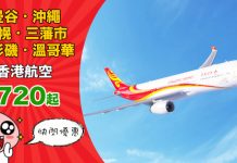 【港航快閃優惠】限時3日!香港來回曼谷$720、沖繩$820、札幌$3,040、三藩市 / 洛杉磯$3,440、溫哥華$3,600 – 香港航空 (優惠至10月24日)