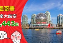 【直飛楓葉國】筍價!香港來回溫哥華經濟艙$3,443起、商務艙$19,453起!2019年4月尾前出發 – 加拿大航空