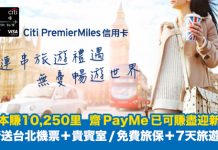【0成本賺10,250里】齋 PayMe 已可賺盡迎新優惠!Citi PremierMiles 迎新送台北機票+貴賓室 / 免費旅遊保險+7天免費旅遊數據