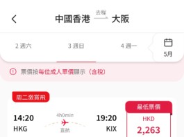 【港航.大阪快閃優惠】香港飛大阪來回連稅$2,263起!包寄艙行李+手提行李+隨身物品+飛機餐