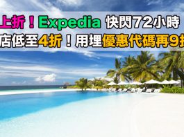 酒店折上折!Expedia 快閃72小時.環球酒店低至4折!用埋優惠代碼額外再9折!