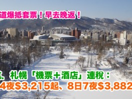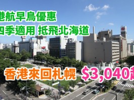 北海道爆抵套票!早去晚返!港航.札幌「機票+酒店」連稅:5日4夜$3,215起、8日7夜$3,882起!包20kg行李!2018年5月17日前出發 – 香港航空 (優惠至12月8日)