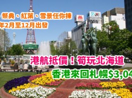 港航抵價!筍玩北海道!香港來回札幌$3,040起!四季適用!賞櫻、祭典、紅葉、雪景任你揀!2018年2月至12月出發 – 香港航空