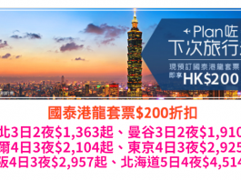 筍減!全線國泰 / 港龍套票減$200!台北3日2夜$1,363起、曼谷3日2夜$1,910起、日韓4日3夜$2,104起!包30kg行李.旅行日期至2018年3月25日 –...