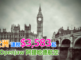 超抵!香港來回歐洲連稅$3,577起,回程轉飛曼谷$2,534起!12月15日前出發 – 阿提哈德航空