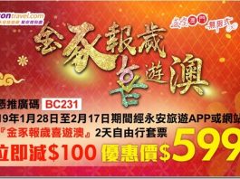 【感受澳門無限式】澳門套票每位減$100!澳門百老匯酒店+來回船飛:每位$529起!送美食券、暢玩天浪淘園 – 永安旅遊 (優惠至3月17日)