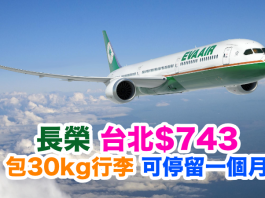 長榮.全年優惠!香港來回台北$743!包30kg行李.可停留一個月!2017年6月前出發