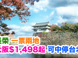 一票兩地!長榮.香港來回大阪只需$1,498起!可中停台北!2017年6月30日前出發