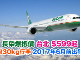 長榮爆抵價!香港來回台北$599起!包30kg行李.可停留一個月!2017年6月前出發