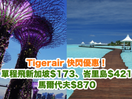 快閃優惠!虎航Tigerair.香港單程飛新加坡$173、峇里島$421、馬爾代夫$870!