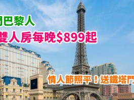 歎澳門酒店!筍價住巴黎人!雙人房每晚$899起!情人節照平!送鐵塔門票!2018年3月底前出發 – Hutchgo (優惠至2018年3月29日)