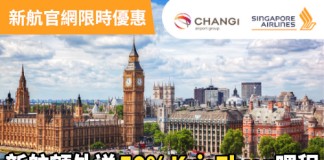 【新加坡航空限時額外送50% KrisFlyer 哩程!多重優惠輕鬆遊歐洲 / 澳洲】筍價!歐洲 / 澳洲優惠價$5,260起!額外賞50% KrisFlyer哩程!Visa 享現金回贈高達$800!樟宜機場轉機享免費新加坡觀光之旅!免費享用新航機上Wi-Fi!送價值新幣30元 KrisShop 禮券...