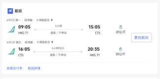 【GBA.北海道優惠】香港飛札幌來回連稅$1,878起!包埋寄艙行李+手提行李+隨身物品+輕食