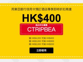 高達10%酒店折扣碼!Ctrip x BEA 酒店優惠.金額滿$4,000減$400;滿$3,000減$300;滿$2,000減$200...