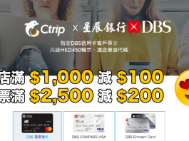 高達10%折扣碼!Ctrip x DBS 酒店及機票優惠.酒店滿$1,000減$100;機票滿$2,500減$200...