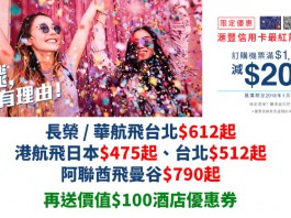 抵到彈起!ZUJI x 滙豐信用卡.機票連稅滿$1,000即減$200!港航飛日本$475起、台北$512起;長榮 /...