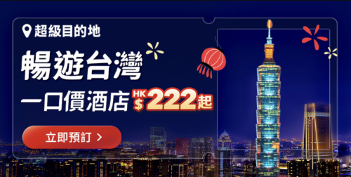 - 台灣酒店一口價 $222